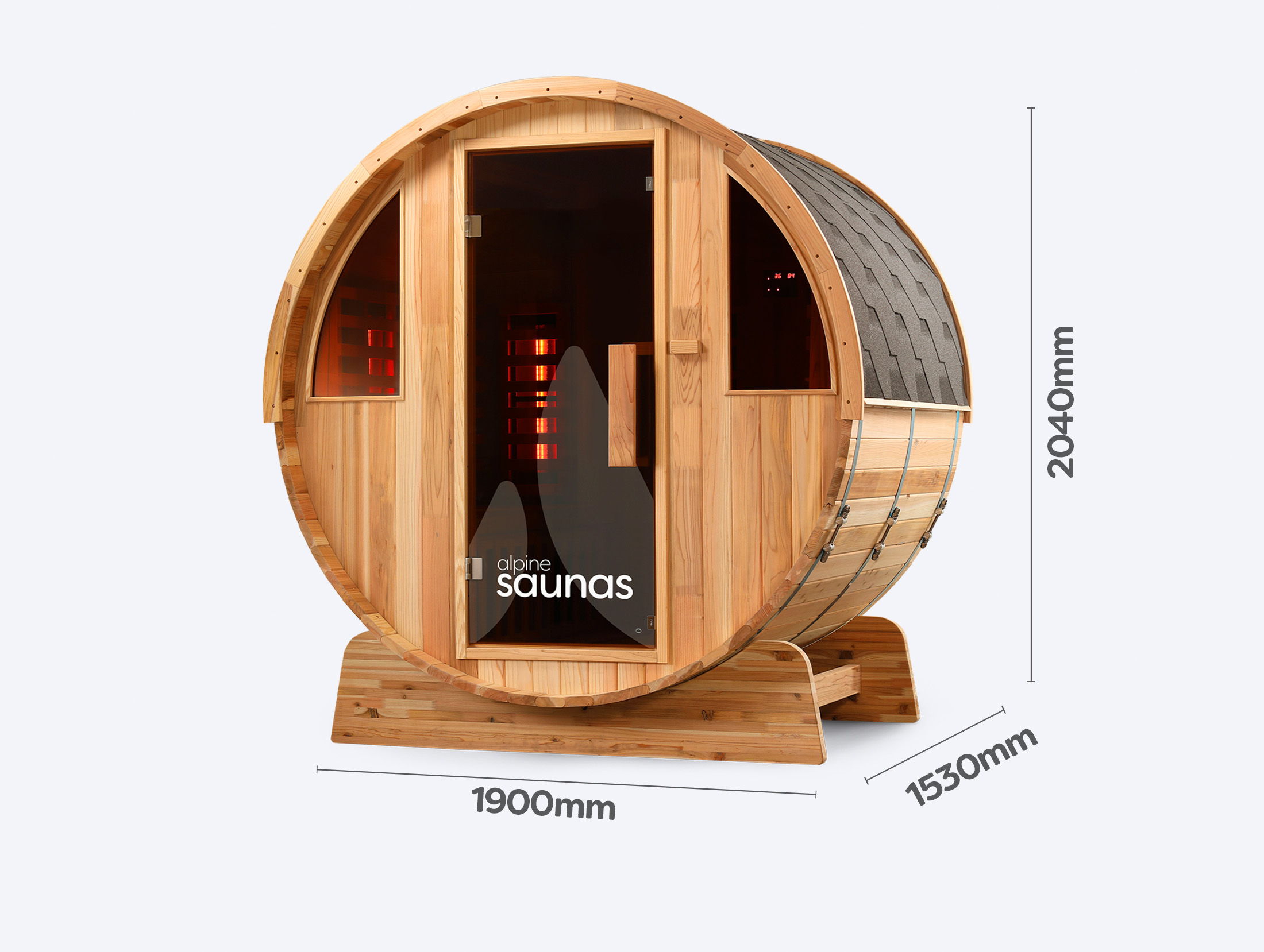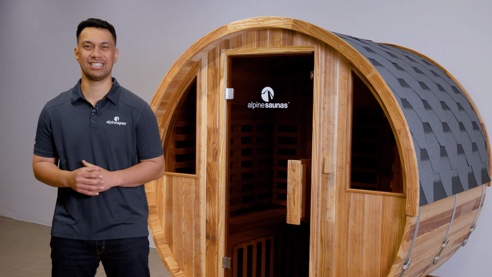 The Alpine Spas Infrared Barrel Sauna takes our classic outdoor cedar barrel and upgrades it with QuantumFeel™ Full Spectrum infrared heating for deeper, more therapeutic warmth. Seating up to four adults, it’s built with sustainable moisture - and pest-resistant Rustic Cedar, a weatherproof BituMax™ Roof, and 8mm toughened glass for heat retention and views. Powered by a standard 15-amp plug, it delivers spa-quality relaxation in a durable, low-maintenance design.