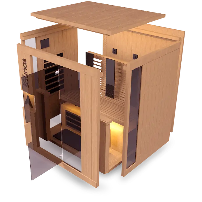 Our Sauna holds 30% more heat than full glass panel Saunas on the market- so you can have a more efficient Sauna with faster heat up times that costs you less to run.