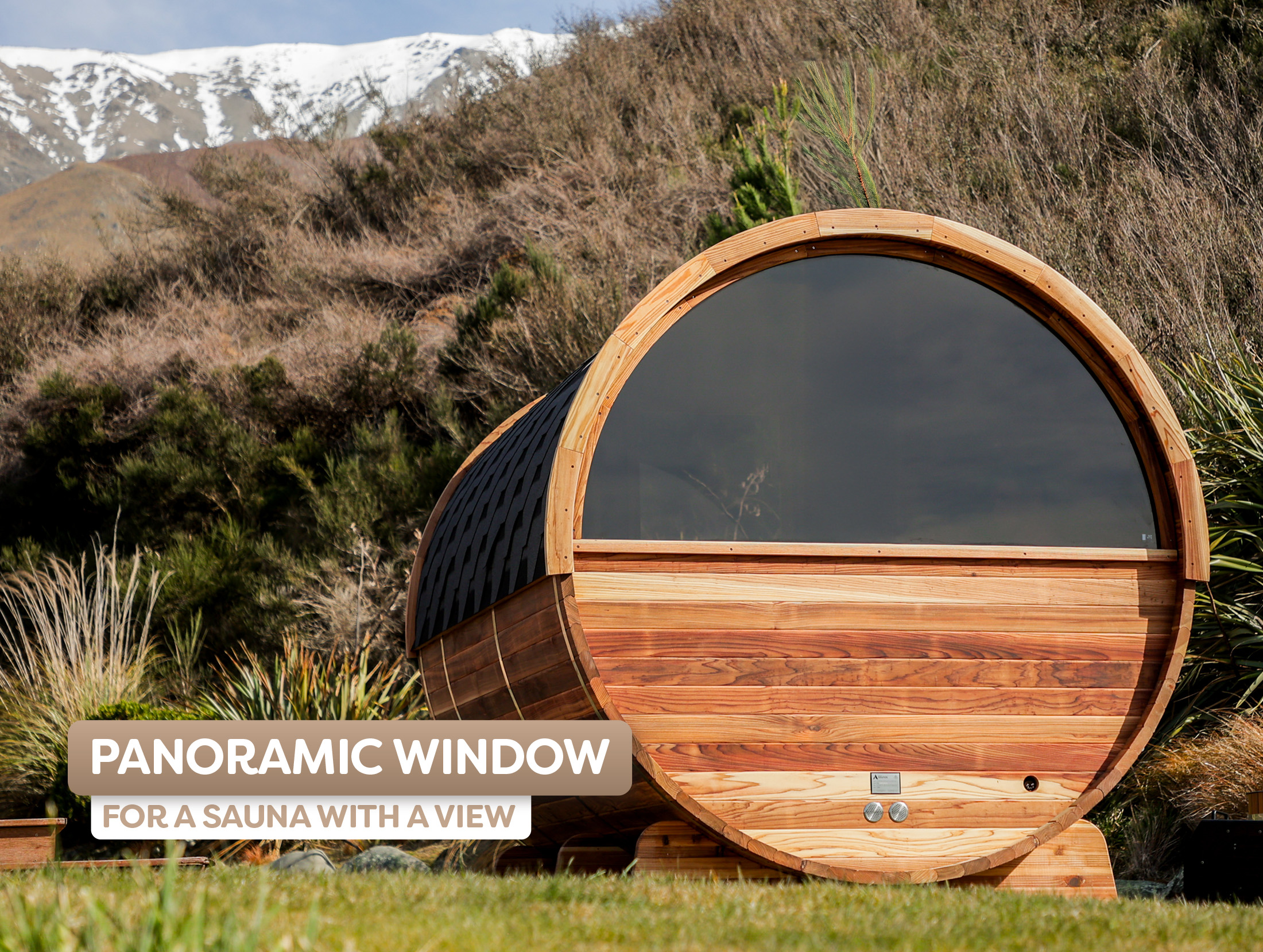 A panoramic glass window lets you enjoy your sauna with an amazing view.