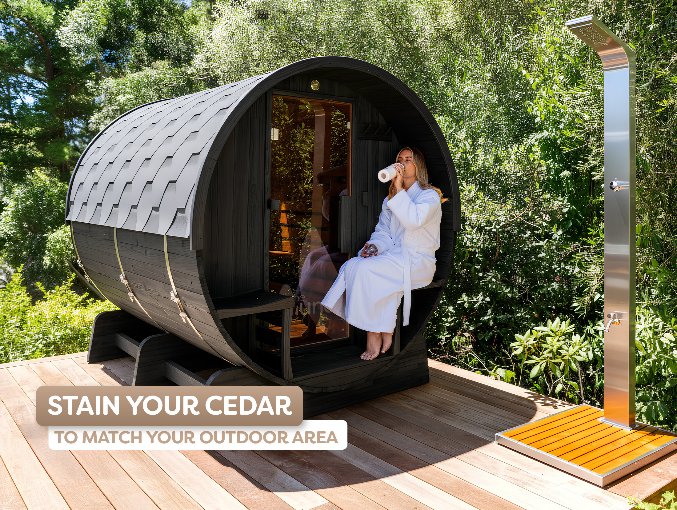 Cedar resists moisture, decay, and pests for durable, long-lasting outdoor saunas.