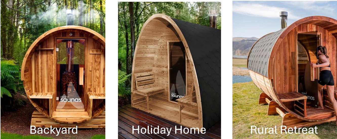 Hut Saunas – classic aesthetic and easy to integrate into outdoor settings.