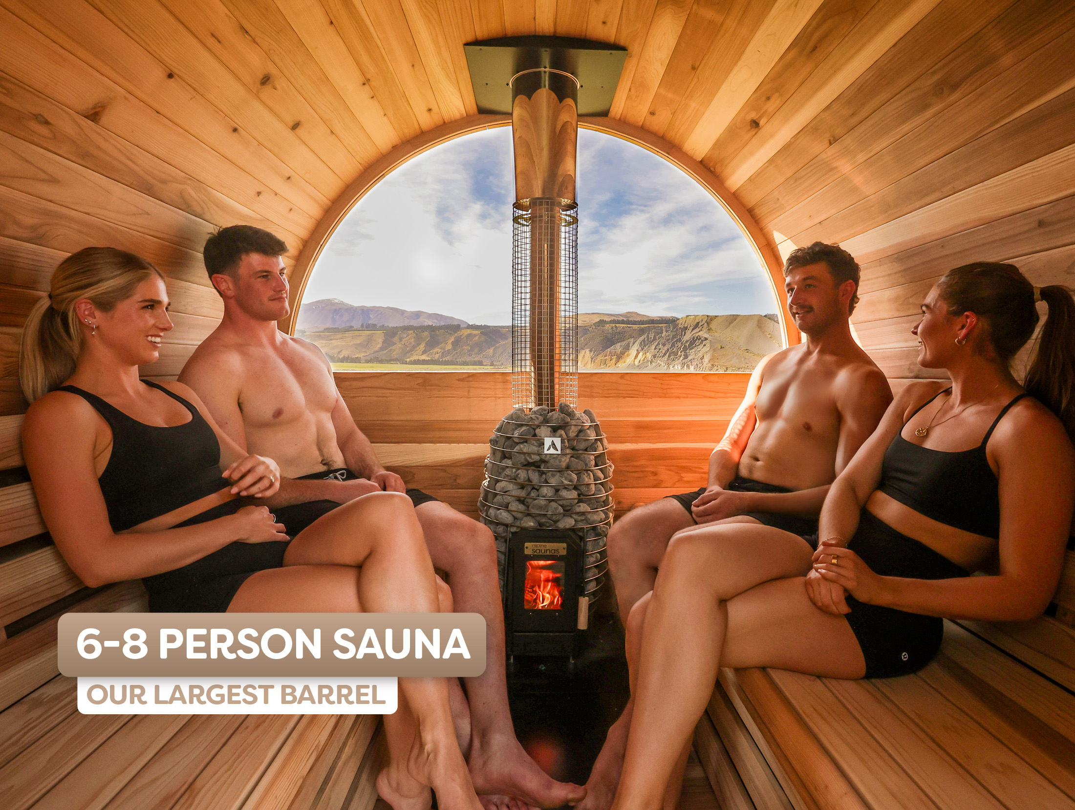 Kick back in the spacious Wood Fired Vista XL Barrel Sauna, the ultimate off-grid Aussie retreat. Made from FSC® Certified Cedar and powered by a 20kW NordicFlame™ Wood Burner with 100kg of Olivine stones, it delivers intense Finnish heat with zero electrics. Park it by the lake, at the bach, or in your backyard, and sweat it out with a panoramic view you’ll never forget.