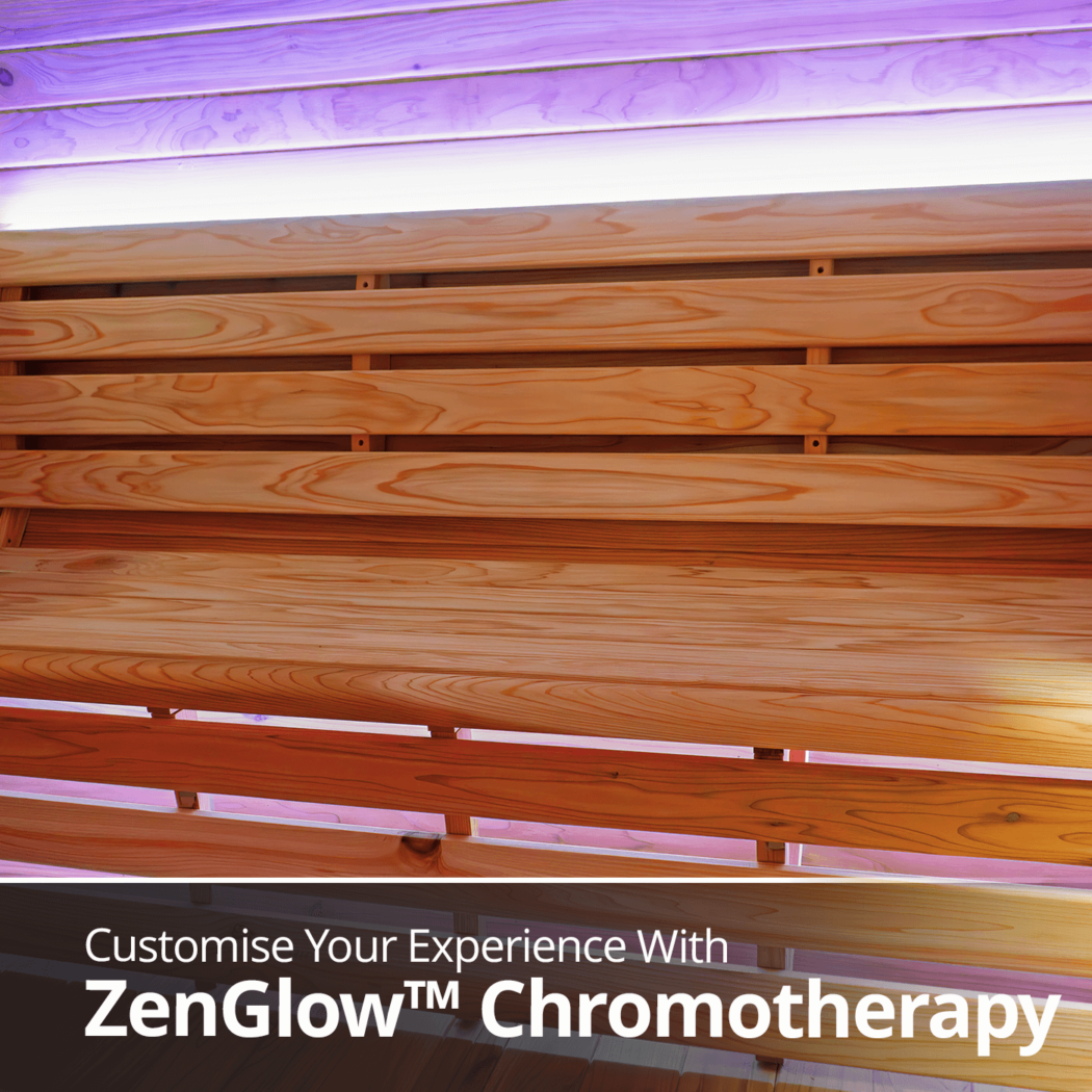 Our ZenGlow™ Chromotherapy uses different colour lights to influence mood, emotions, and physical health. Combined with heat, it enhances relaxation, reduces stress, and supports wellness.