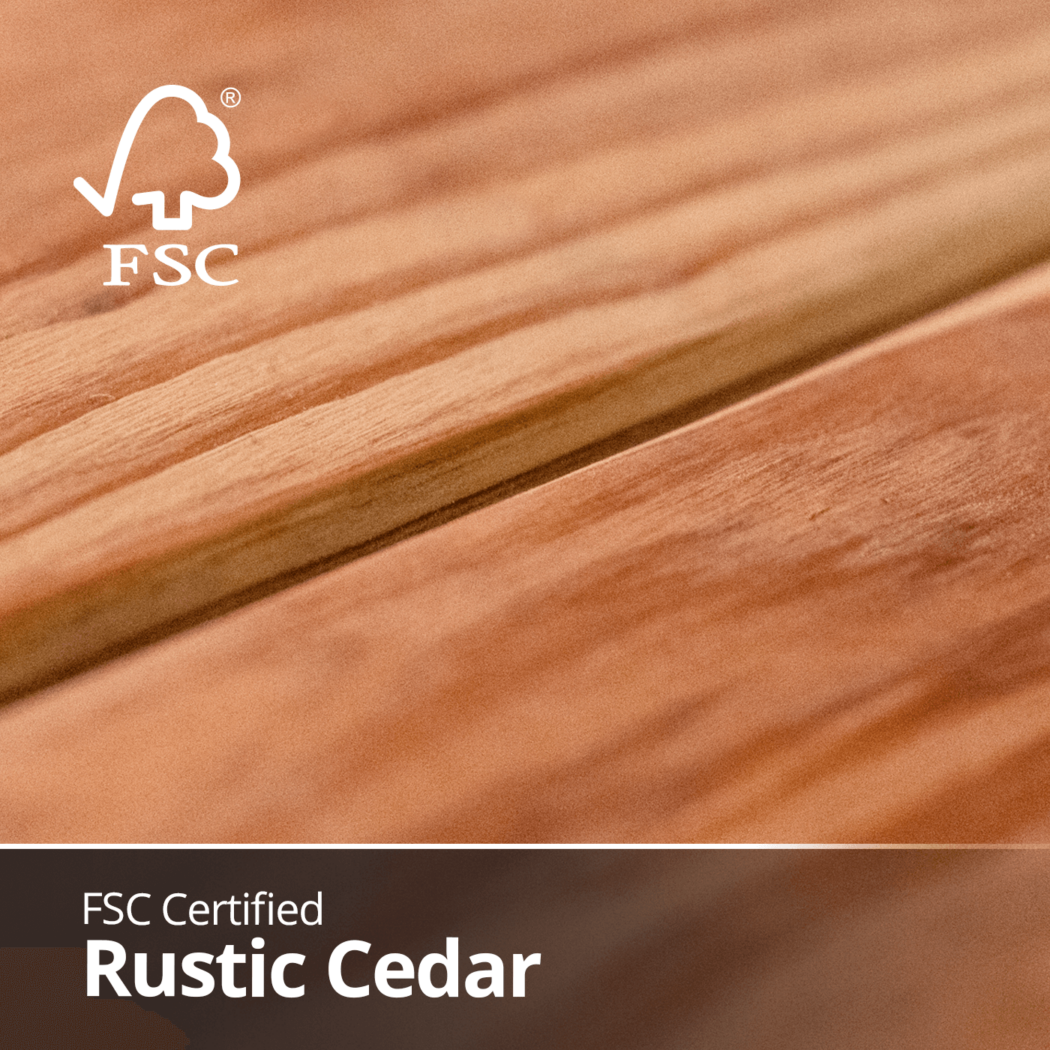 We strictly use FSC® Certified Rustic Cedar for our range of traditional Saunas due to their long list of appealing properties. Not only does our Cedar look better in your backyard, it carries a range of natural resistances and benefits that make your choice of timber an easy one..