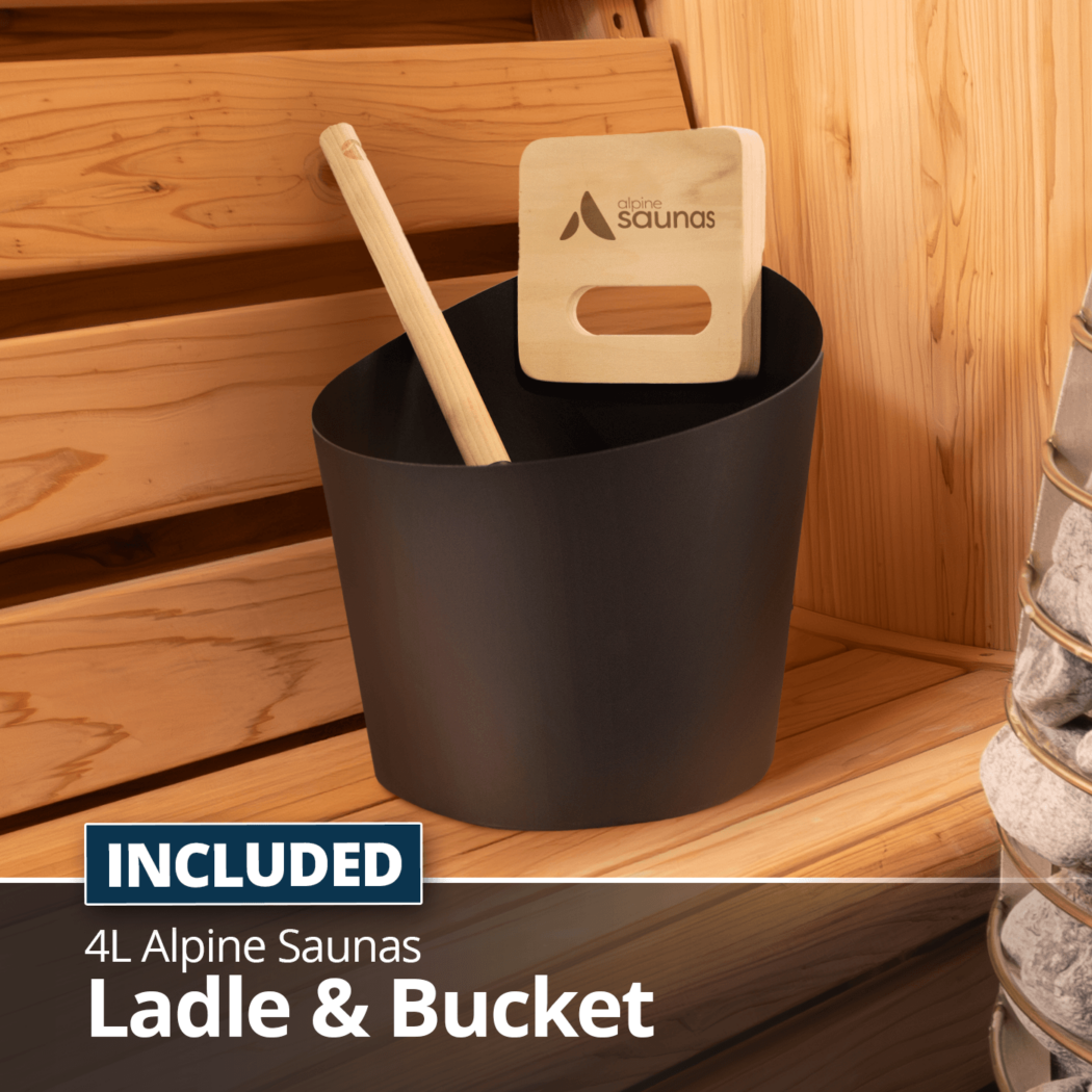 Our traditional saunas include a ladle and bowl to scoop water onto the rocks, adding steam and increasing the humidity.