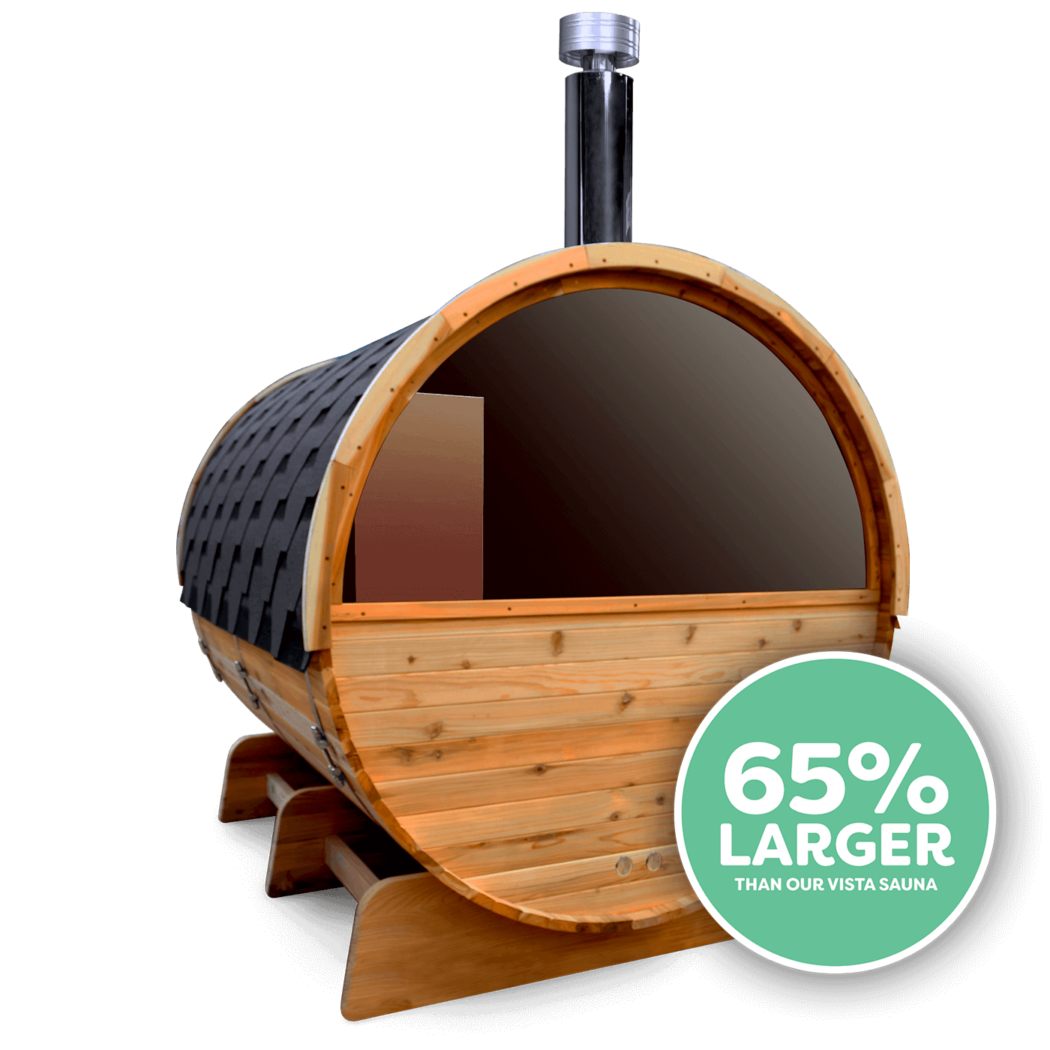 Take your off-grid wellness experience to the next level with the Vista XL, our spacious wood-fired barrel Sauna designed for bigger views, deeper heat, and more room to stretch out and unwind. With its oversized panoramic window, the Vista XL lets you fully immerse in the outdoors — whether you’re facing rolling hills, a forest clearing, or your own backyard sanctuary.