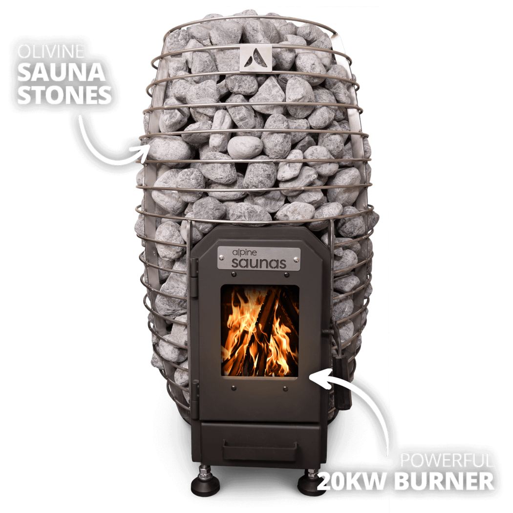 Our Olivine Sauna stones are another gamechanger for our Vista XL Wood Fired Barrel Sauna. The round shape, increased quantity and impurity free nature of the stones help create what the Fin’s describe as Löyly – the rejuvenating soft steam that is returned from dousing the stones with water.