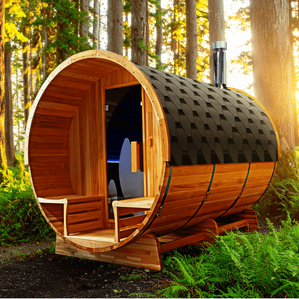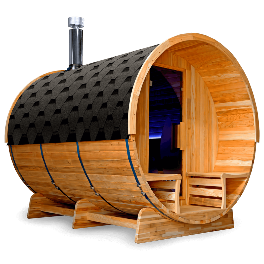 Our Wood Fired Vista XL Barrel Sauna offers an unparalleled experience. Enjoy a more unique type of heat and higher temperatures than traditional electric heaters, while basking in the warm, rustic ambiance of a crackling fire – all while saving significantly on your energy bills.
